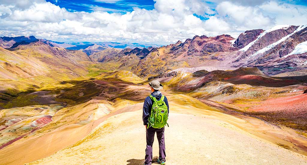 Después de una caminata de 7.5 Km se detendrá en la cima y tomará un merecido descanso para disfrutar de las vistas. Su guía le explicará qué constituye la existencia de la Montaña del Arco Iris, y finalmente con un último empujón subirá a una posición ventajosa que le brindará una vista de 360 grados del bello paisaje incluido el Valle Rojo que forma la tierra sagrada.